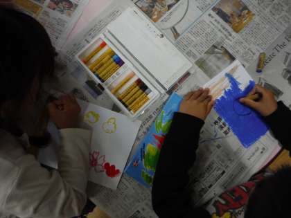図工で「誕生日列車」を作るために,季節の絵を描きました。列車の絵本の読み聞かせをしたあと,それぞれに季節にちなんだものをイメージし,描くものを決めました。自然の様子や行事など,思い思いに集中して描いていました。