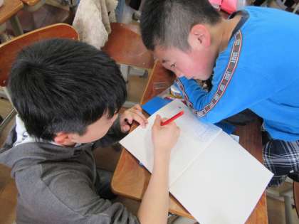 子どもたちは,図に線を書き込み,友達とともに気づいたことを説明し合うことができました。