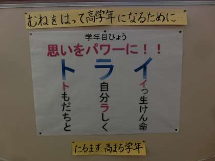 「思いをパワーに!!トライ(友達と 自分らしく 一生懸命)」
