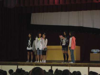 放送委員会は,寸劇を交えて放送原稿がどのように作られているのかの紹介をしてくれました。