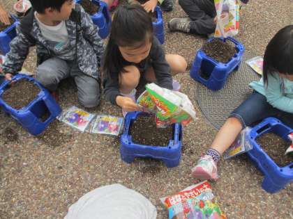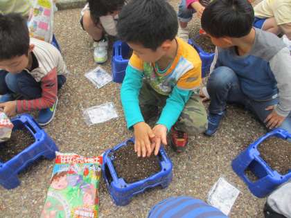 生活科 あさがおの種をまいたよ!!