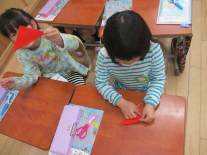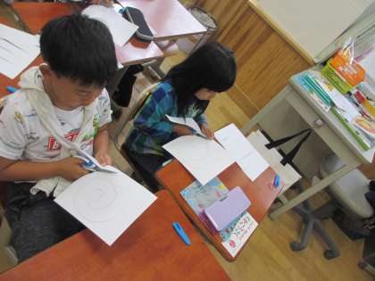 丸く切るときは,紙を回しながら切ることなどを集中して取り組んでいました。