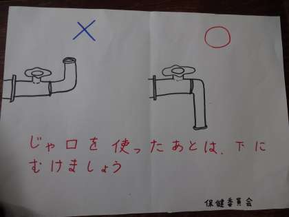 保健委員会では、トイレのスリッパの整頓についてや、蛇口の向きなどについて現状を報告したり、ポスター作りをしたりしました。
