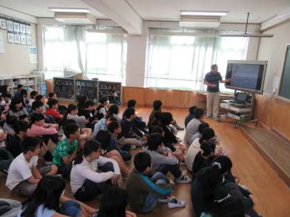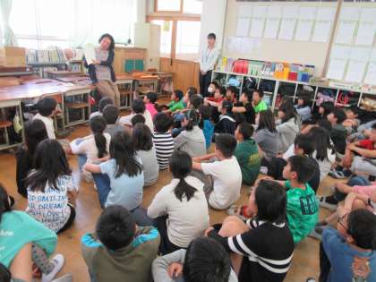 絵本「あおぎりの願い」の読み聞かせに子どもたちは夢中になっていました。