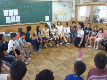 フルーツバスケットをアレンジし,How are you?と尋ねながら自分の調子に合ったところで移動するゲームもしました。子どもたちは大盛り上がり!私も汗が流れるほど,一緒に楽しむことができました。