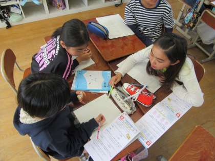 問題の解き方を確認した後,グループで話し合いながら他の問題を解きました。