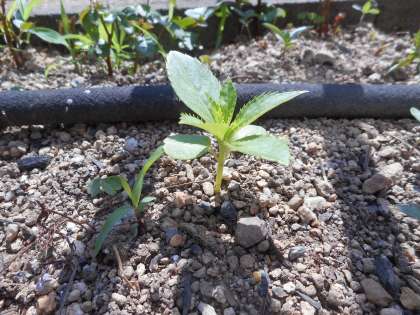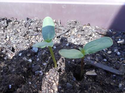 4月に植えた植物の種がだんだん育ってきました。植えたのは,ヒマワリとホウセンカです。これからどのように育っていくのか,先生も子どもたちも楽しみにしています。(左:ホウセンカ  右:ヒマワリ)