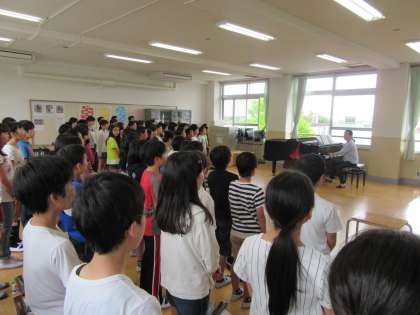 1年生を迎える会に向けて,歌の練習とコールの練習をしました。
