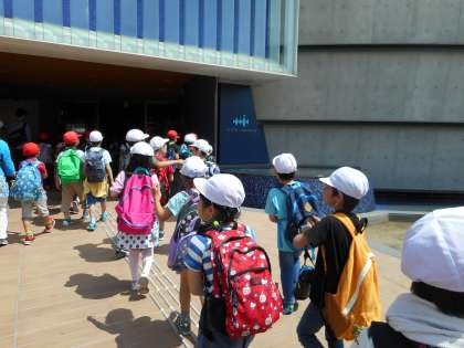 京都水族館へ列になってウキウキしながら出発しました。「イルカはどんなショーを見せてくれるのかな。」「アザラシはどんな大きさだろう。」「お弁当が楽しみだな。」といろいろな声を聞きました。