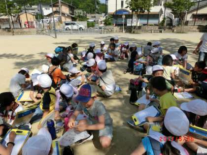 まちたんけんをして,みつけたこと,気づいたことを「たんけんカード」に書きました。今回は,3回目のまちたんけんということもあり,○○が多いだけでなく,どうして多いのか考えたことを書く姿も見られました。