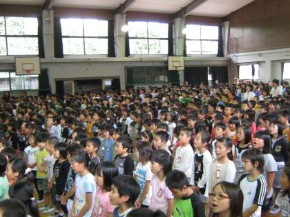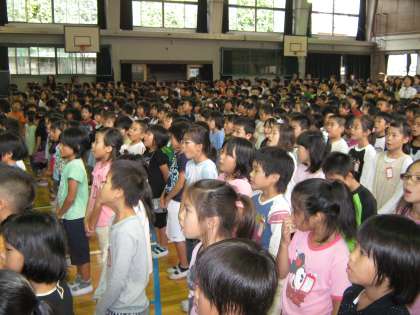 まずはじめに,校歌を歌いました。みんなとってもすがすがしく響く声で歌っていて,聞いていて心地よく感じるほどでした。