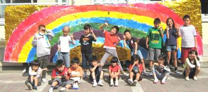 でっかいでっかい「レインボー」を学習発表会で披露します。