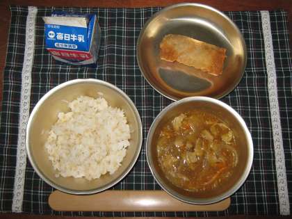 はるまき カレーあんかけご飯の具 玄米ごはん 牛乳