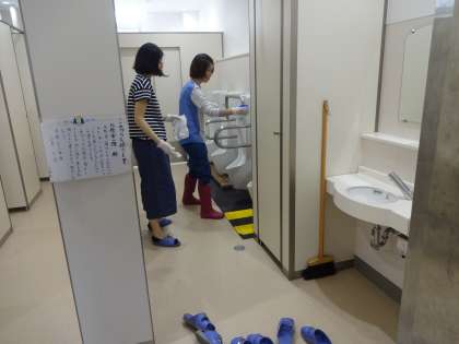 本日の清掃時間に、PTA保健厚生部の皆様にお世話になり、保護者の皆様にトイレ掃除をしていただきました。