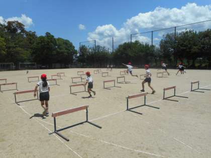 ハードル走の学習にもずいぶん慣れ,自分たちで進んで学習できるようになっています。準備や後片付けも誰一人手抜きすることなく,全員で協力して取り組む姿に感心しています。