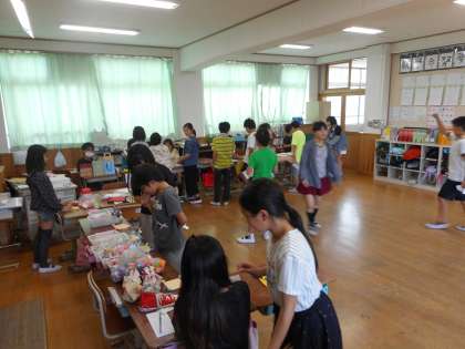 学級活動で,かねてより計画し,準備をしてきた「6いシティー」をおこないました。子どもたちは,当日に向けて,コーナー毎に様々な準備をしてきました。銀行係は手作りのお金をつくり、給料の支払いをスムーズに進められるように,金額毎にクリップでとめる工夫をしていました。折り紙屋係は,多くの作品をていねいに制作し,ラッピングをするなどの工夫をしていました。本屋係は,自分たちで本を書き,しおりを作るなどの工夫をしていました。布屋係は,フェルトや布を使いペンケースなどを作ったり,毛糸を使いマスコットを作ったりとなかなかのものでした。カレンダー係は,デジカメで写真をとりパソコンでカレンダーを制作するだけでなく,輪ゴムを使った小物の販売も行っていました。