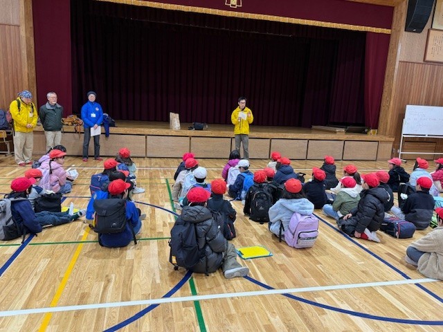 まずは体育館で説明を聞き、いよいよ出発です!