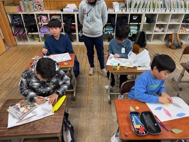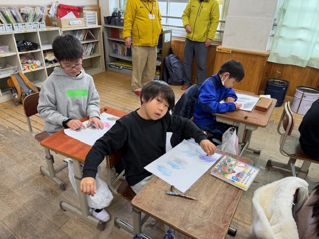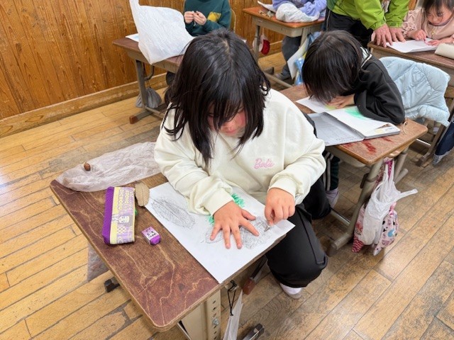 学校に帰ってからは、拾ってきた落ち葉をつかってこすり出しをしました!