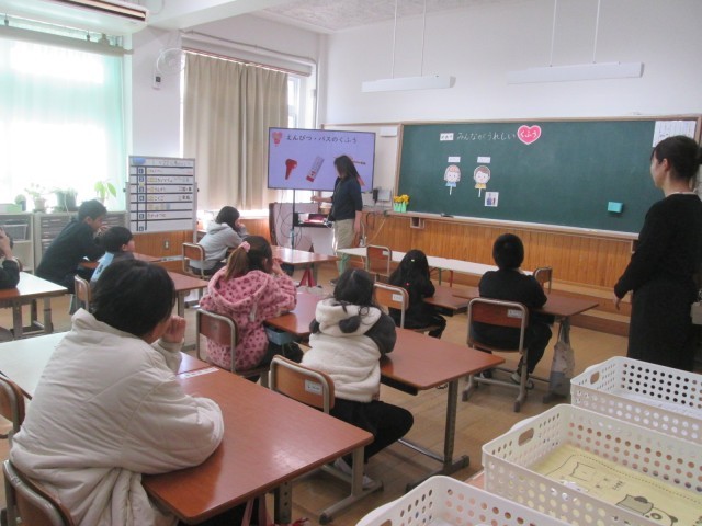 1月22日(木)に人権に関わる子育て参観・懇談会がありました。久しぶりの参観に、子どもたちは気合いが入っていました。ユニバーサルデザインの物や手話について学びました。