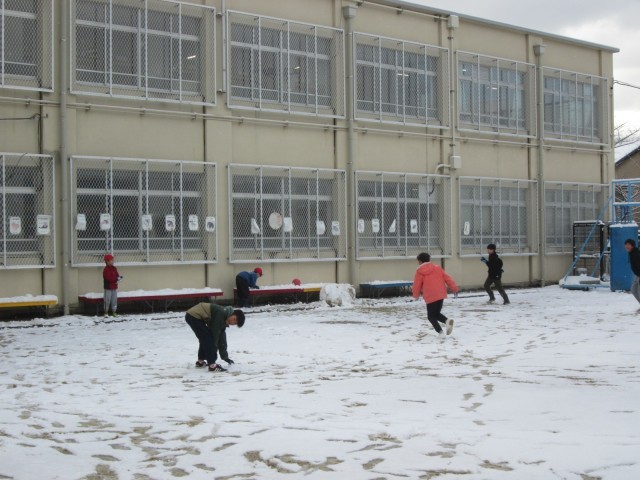 日曜日から月曜日にかけてたくさん雪が降りました。子どもたちは大喜びです。朝から雪合戦や雪だるまづくりなど、楽しみながら登校してくる子どもたち。本当にうれしそうです。大人にとっては大変困ったことになる雪ですが、子どもたちにとってはうれしい雪だったようです。大歓声が運動場から聞こえてきました。