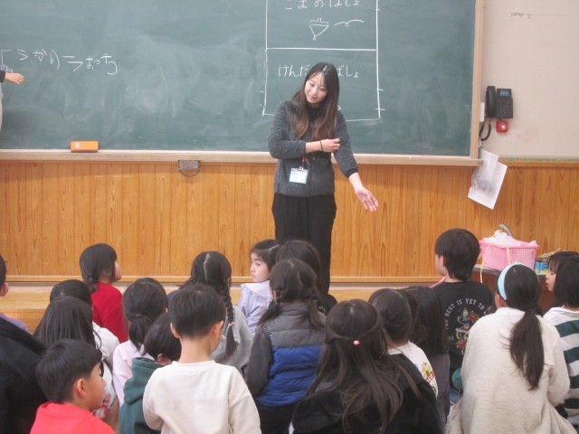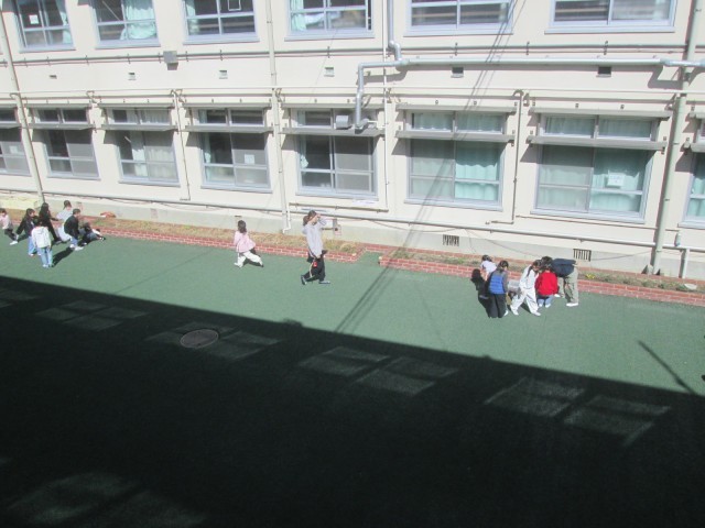 校区の保育園の年長さんが、1年生と交流するために金閣小学校に来てくれました。たこあげやはねつき、カルタ、けん玉、こまなどを一緒に楽しみました。お兄さん、お姉さんとして1年生の子どもたちは張り切っていました。とっても素敵な笑顔がたくさん見られた交流でした。