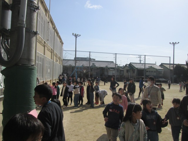 町別集会がありました。この行事があると、学年末が近づいていることを感じます。住んでいる地域ごとに集まって通学路の確認や危険な場所の確認などを行います。今日は、愛護委員のおうちの方も参加しての町別集会でした。