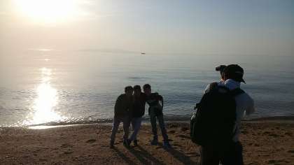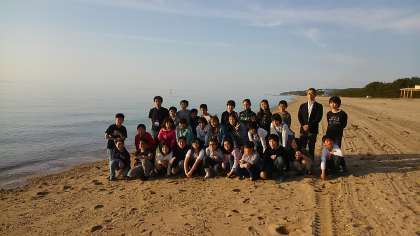 写真は宿舎前に広がる砂浜です。明日もいいお天気になりますように。