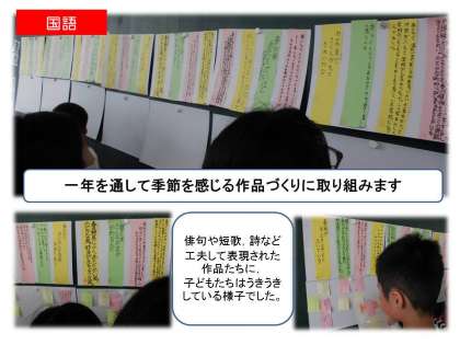 国語では,『春の空』の学習に取り組みました。それぞれ自分が感じる『春』を短歌や俳句や詩など表現方法を工夫しながら素晴らしい作品が並びました。今日は,その作品の鑑賞会をしました。「自分がいいなと思った作品にメッセージを書こう」ということで,たくさんある作品から3つずつ選びました。ふりかえりでは,「同じ桜でもよると朝では変わるという表現が素敵だと思いました。」「進学という言葉がわくわくしました。」など,思い思いに感想を交流しました。