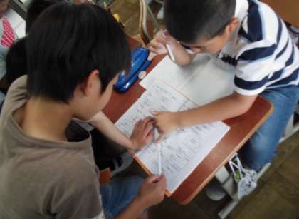 難問にチャレンジしたい気持ちが高まっています。空き時間に「難しい問題をください!」という声が上がりました。問題に群がって,ん〜…ああだこうだと考え続ける子どもたちの姿を見て,どんどん高いものに挑戦する力を感じることができました。難しいことに直面したとき,すぐにあきらめるのではなく,よく考え,たとえ間違ってもそこから学びを見出し,もっといい考え方を試行錯誤していける力をどんどん身に付けていってほしいと思います。