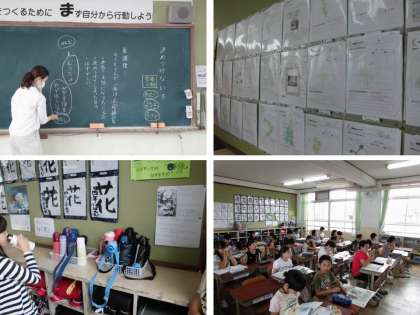 教室にはツルレイシの観察記録や,お茶の入った籠が並び始めました。来週から低学年の水遊びも始まります。季節はいよいよ夏に向かっています。