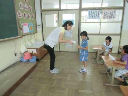 子どもたちは,前回より慣れた様子で,簡単な英語の挨拶を楽しむことができました。
