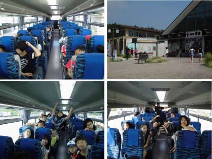 バスに乗りながらいろんな活動を想像すると自然に笑みがこぼれてきます。友達同士でいろいろな話がはずみました。途中、トイレ休憩を取りました。