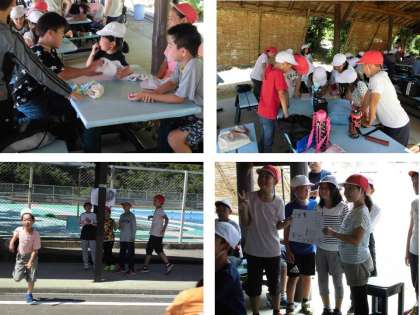 仁和小学校との合同レクリエーションです。混合の小グループをつくり、まず自己紹介しました。大将軍2名に対して仁和小が3〜4名のグループです。
