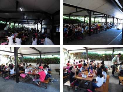 大勢でいただく食事も,いつもと雰囲気がちがって新鮮でした。5年の長期宿泊学習でも,一緒に活動できるとよいですね。