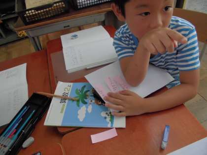 今,2年生では算数で筆算の学習をしていて,プログラミング的思考の一つであるシーケンスを取り入れた授業を行っています。筆算の手順についてグループで話し合い,手順通りに解いていけば答えにたどり着くことを確認しました。