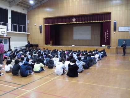 今日で2学期も終わり,明日から冬休みです。校長先生からは「みんなの通知票」のお話しがありました。2学期にがんばれたところ,3学期にがんばるところなど,2学期を振り返り,3学期に向けて目標を確認しました。どの学年も,真剣に静かに聞いていました。1月7日の3学期開始には,みんな元気に登校してください。