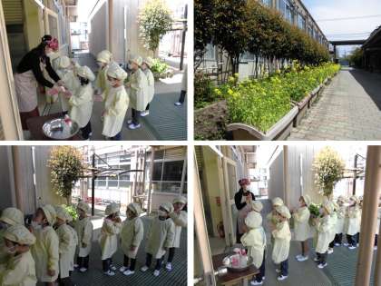初めての給食はとってもおいしかったです。みんな頑張って完食しました。その後,食器や牛乳の返し方を教わって,初めての給食が終わりました。