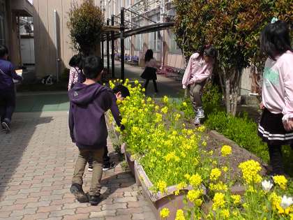 理科の学習で学校の中の春の生き物を探しました。植木鉢を動かしてダンゴ虫を探したり,モンシロチョウの卵を見つけたり,とっても意欲的に活動していました。