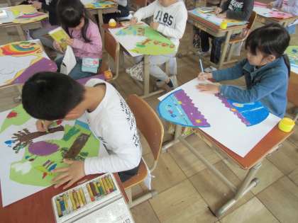 2年生は,図画工作科で「ひみつの たまご」の学習に取り組んでいます。