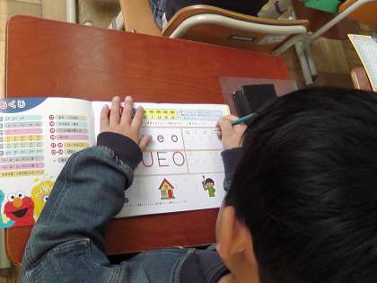 3年生で初めてローマ字の学習をします。「ローマ字って何だろう。」「楽しみだな。」とワクワクした気持ちで学習にのぞむ子どもたちでした。お手本をよく見て,丁寧に練習しています。