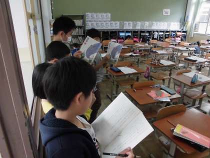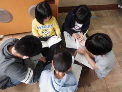国語科「きつつきの商売」では,学習したことをもとに音読発表会を行います。グループで場面や担当を決め,上手に練習しています。どのような発表会になるか楽しみです。