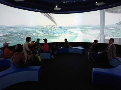 大鳴門橋記念館に到着しました。ここで鳴門の渦潮について学んで,実際の渦潮を観に行きます。
