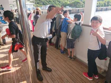 記念館で学習した後は,遊覧船に乗って渦潮の見学です。どんな渦が見れるのかワクワク楽しみです。