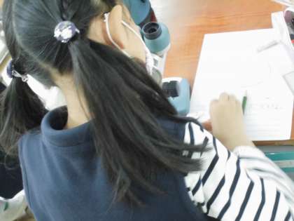 色や形,大きさ,触った感じなど,観察の仕方がとても上手になってきています。ホウセンカの種はとても小さいので,とても驚いたような様子でした。茶色い小さな種ですが,顕微鏡でよく見ると,黄土色や茶色などの点々がたくさん見えたそうです。これから種をまいていきます。成長が楽しみです。