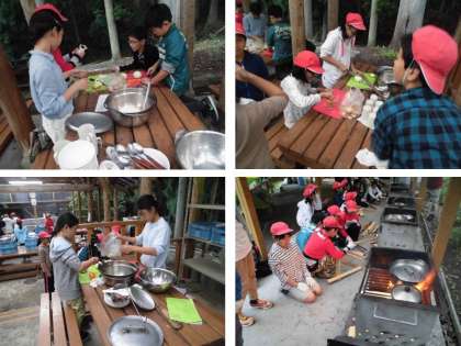 竹ばしつくりの後は、野外炊事です。みんなでカレーライスを作ります。