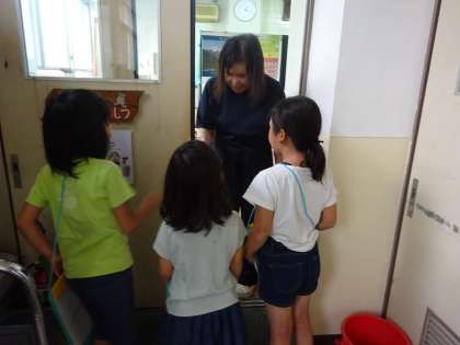 1年生は生活科「なかよしいっぱいだいさくせん」の学習の中で,学校で働く人となかよくなるために,教職員の方々にインタビューをしています。