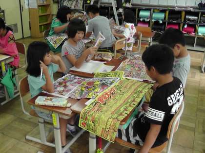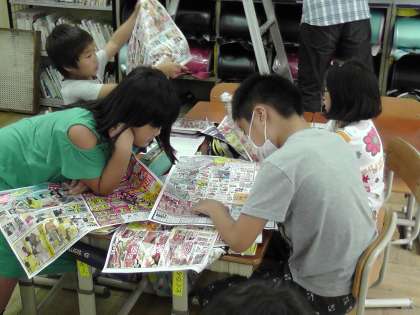 社会科の学習で商店のはたらきについて学んでいます。今日は,スーパーマーケットなどお店が出しているチラシを見て,お客さんを惹きつけるための工夫を見つけました。