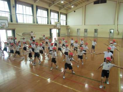 特に,グループの仲間と相談して,自分達で考えた踊りをする場面では,1年生と2年生が力を合わせ,しっかり踊れるようになろうと,たいへん努力している様子が見られました。