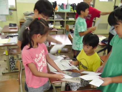国語科の学習で「へんとつくり」について学んでいます。同じへんやつくりのつく漢字を集める活動では,とても意欲的で大変楽しく学習しています。同じへんやつくりのつく漢字を集めると,へんやつくりの表す意味がだんだん分かってきました。気づいたことを交流すると,「ほんとや!!」とみんな,興味津々です。漢字パズル作りにも意欲的でした。辞典を使って調べたり自主勉強で同じへんやつくりのある漢字を探してきたりする姿も見られます。
