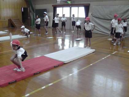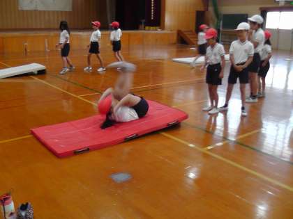 それぞれの技のポイントを考えたり,回るだけでなく綺麗に立ち上がることができるようにしたりしています。マット運動の学習に入るまでは,「苦手だな。」「難しそうだな。」と感じていた子どもたちですが,練習するたびに上手になっていっています。できるようになると楽しさも感じてくるようです。
